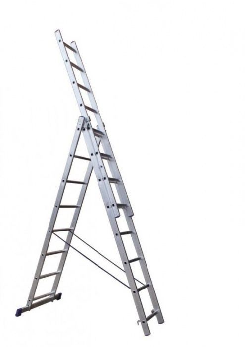 Ступени имеют противоскользящую рельефную поверхность. В верхней части лестницы расположен верхний соединительный узел. На узкой и средней секции внизу расположены зацепы с предохранителями, с помощью которых осуществляется установка лестницы на нужную высоту. Шаг регулировки по высоте - 280 мм. На широкой секции внизу находится стабилизатор, который необходимо установить перед применением лестницы. Он придает лестнице дополнительную устойчивость. На концах секций и стабилизаторе установлены массивные обрезиненные башмаки. Узкая и средняя секции скреплены между собой страховочными ремнями. Лестница изготовлена с учетом требований ГОСТ 24258-88