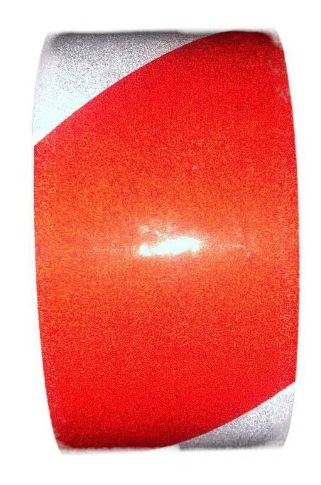 Светоотражающая красно-белая лента применяется для маркировки в ситуация, когда нужно обеспечить отличную видимость разметки как днем, так и в темное время суток.