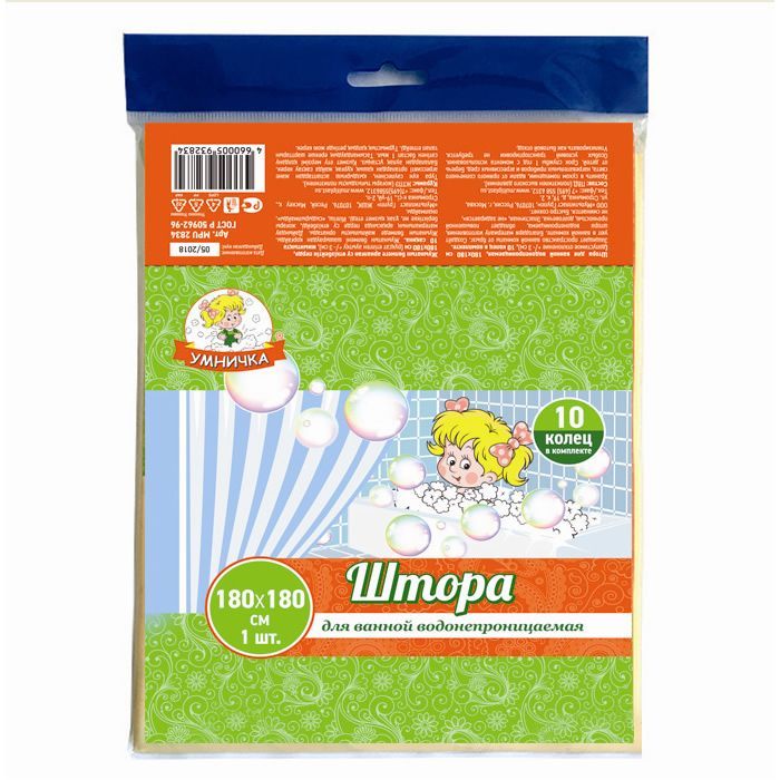 Занавеска для ванной фирмы Рыжий кот. Размер: 180x180 см Материал: 100% полиэстер с водоотталкивающим покрытием 10 пластиковых колец в комплекте Упаковка: ПВХ пакет с крючком